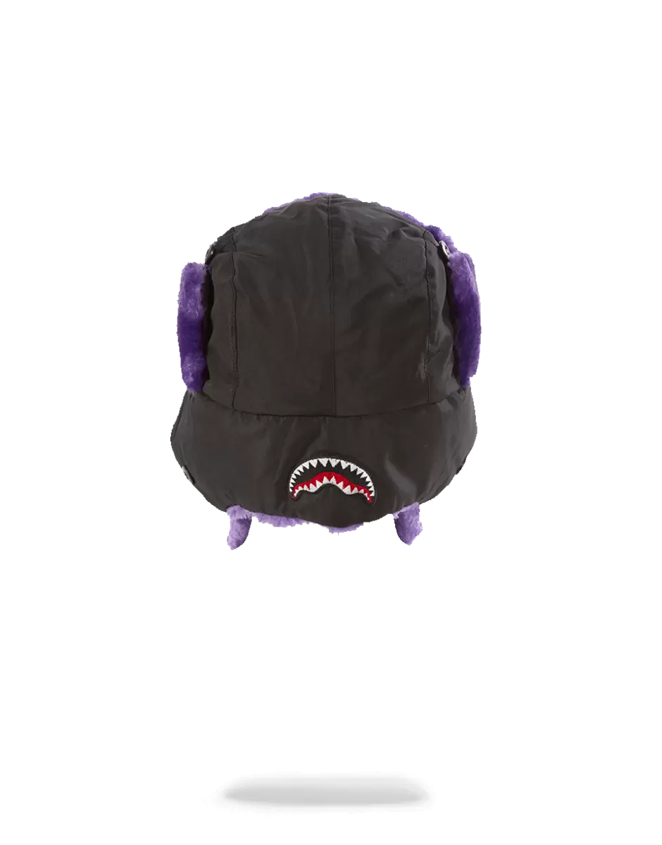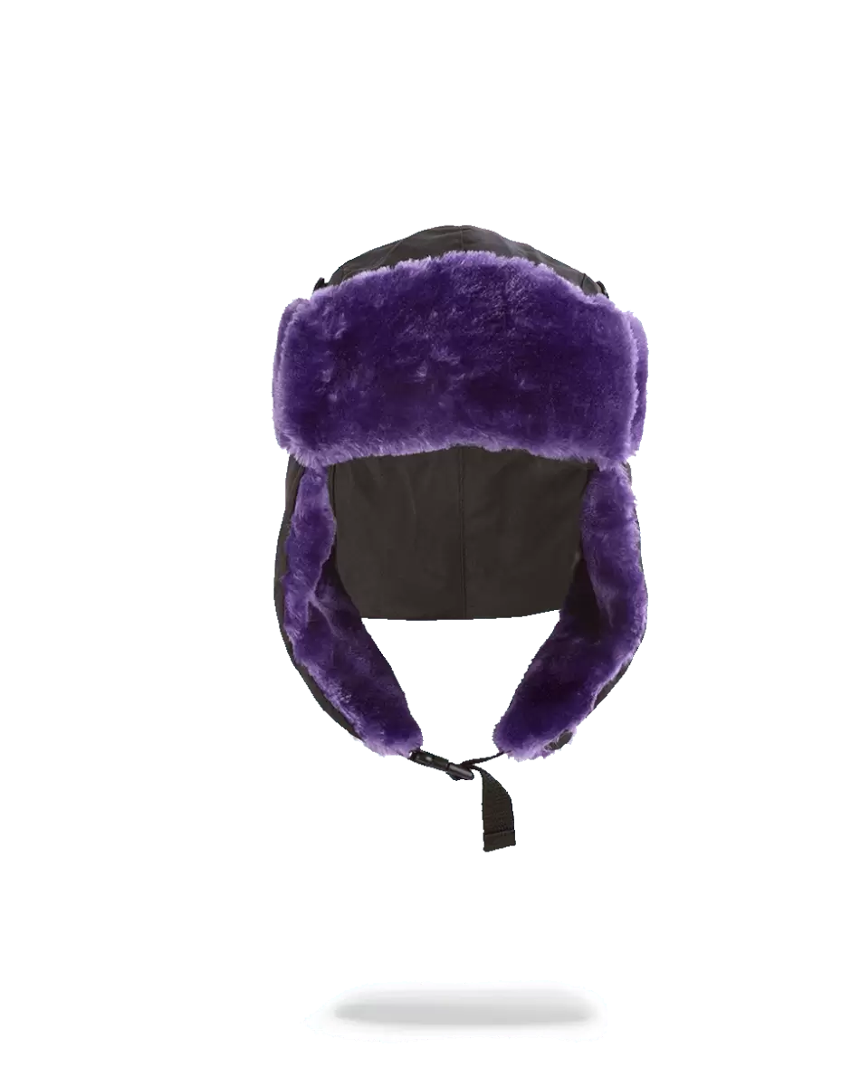 BLACK 3M PURPLE FUR AVIATOR HAT
