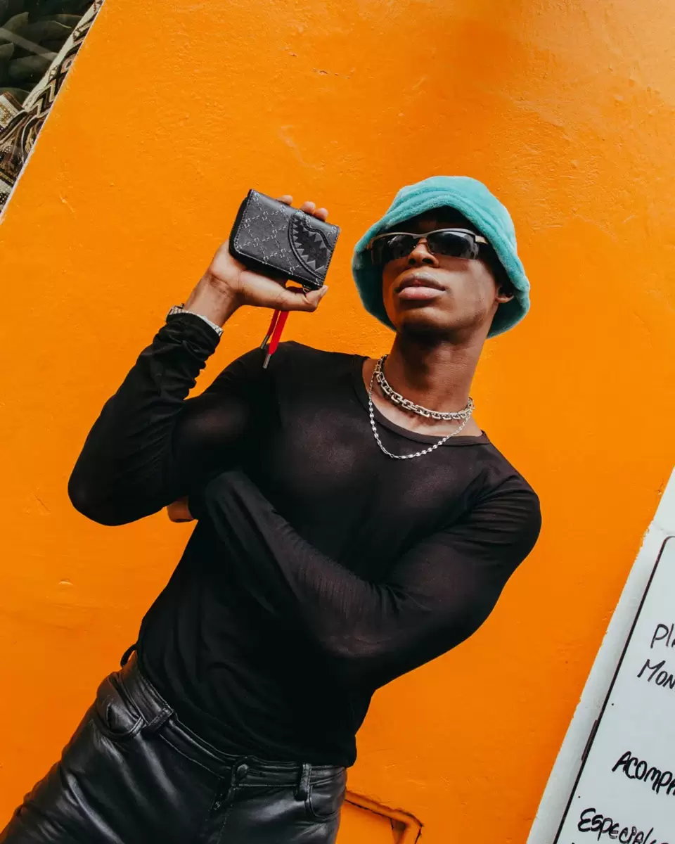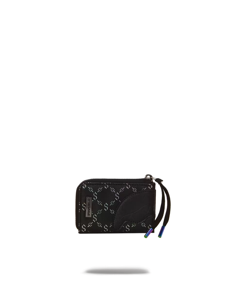 Wallet4 interior pockets for cash & cardsZip Closure3” x 4.5” x 0.75” 100% PVC with exclusive laser cut money logo pattern applied over metallic iridescent fabr