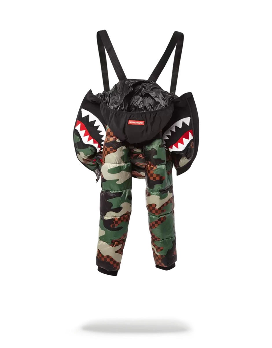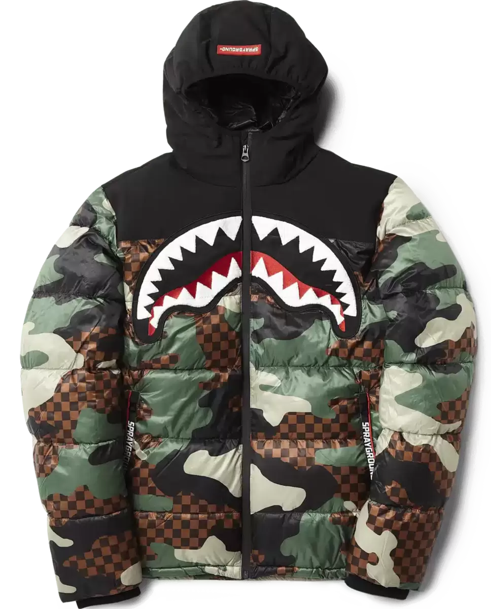 Not your average jacket! Every detail was designed with you in mind! Make the Sprayground Checkered Camo Puffer Jacket your daily fashion statement this winter. Featuring inner straps to have it hang on you when you need some cooling off and pop it back on for a super heavy down to keep you warm even on the coldest days. Durable water resistant fabric to last you for many seasons. Pick up the matching, gloves and headwear to complete the look.