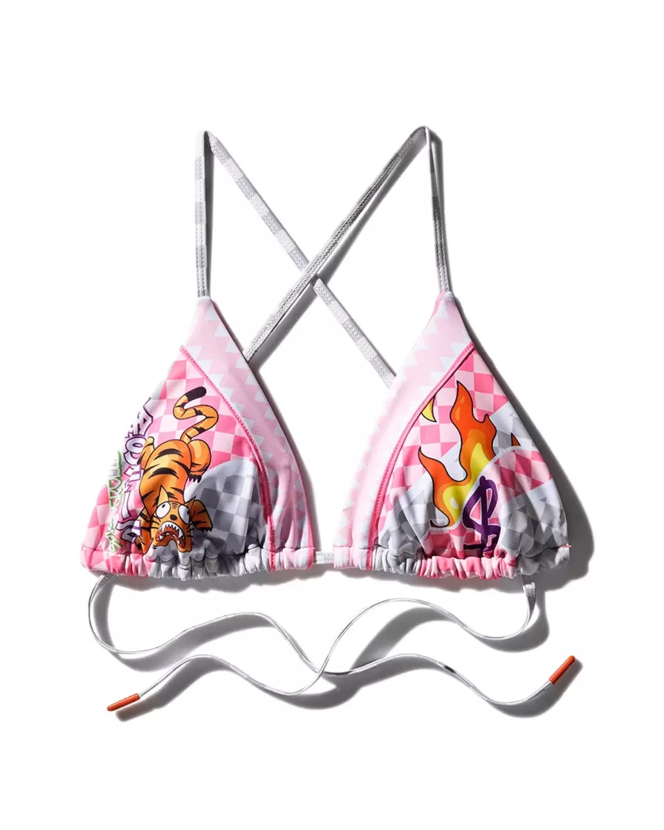 MATERIAL COMPOSITION83% polyester 17% elastaneFeaturesVertical Sharkmouth printed contrast bandSelf spaghetti straps for tiesAdjustable straps at backsideConver