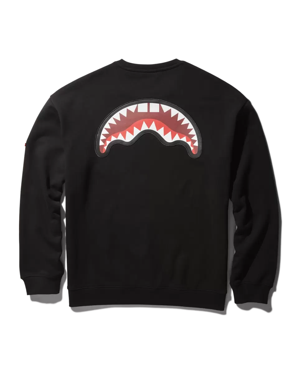 MATERIAL COMPOSITION 100% COTTON FEATURES Long sleeve crew neck pullover All over splat print Sprayground signature rubber emblem logo Vertical Sharkmouth tape
