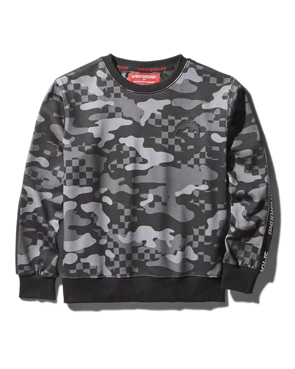 100% POLYESTER Details PRINTED NYLON GREY-BLACK CAMOUFLAGE ROUND NECK CREW; BLACK/WHITE LOGO BAND ON SHOULDER AND SLEEVES; BLACK SHARKMOUTH ON CHEST