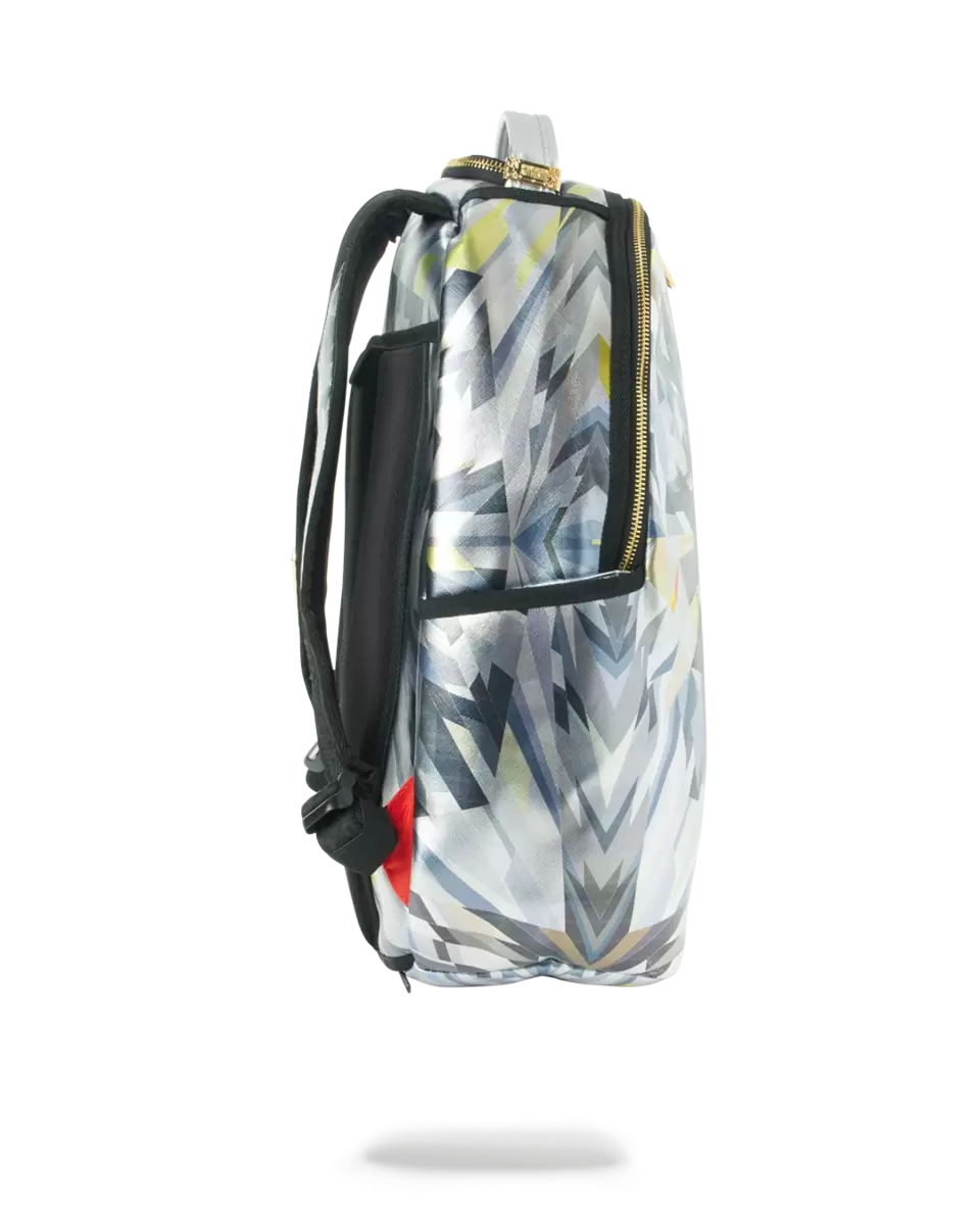 Dimensions: 18″ x 6″ x 11.5″ Front zipper pocket Side pockets Zippered Stash pocket Separate velour sunglass compartment Ergonomic mesh back padding Adjustable Straps for custom sizing Gold claw and red fringe zippers with metal hardware Metal “Sprayground Authentic” badge Slide through back sleeve connects to carry-on luggage to free your hands