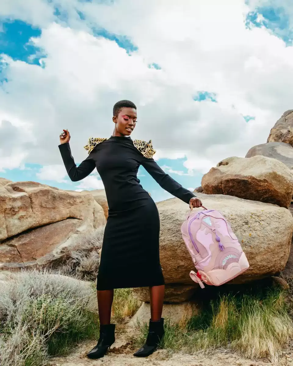 Dimensions 18, x 6, x 11.5, 100% PVC Custom molded logo bottom Custom Shark back panel (no luggage sleeve/ stash pocket) Removable alien charm