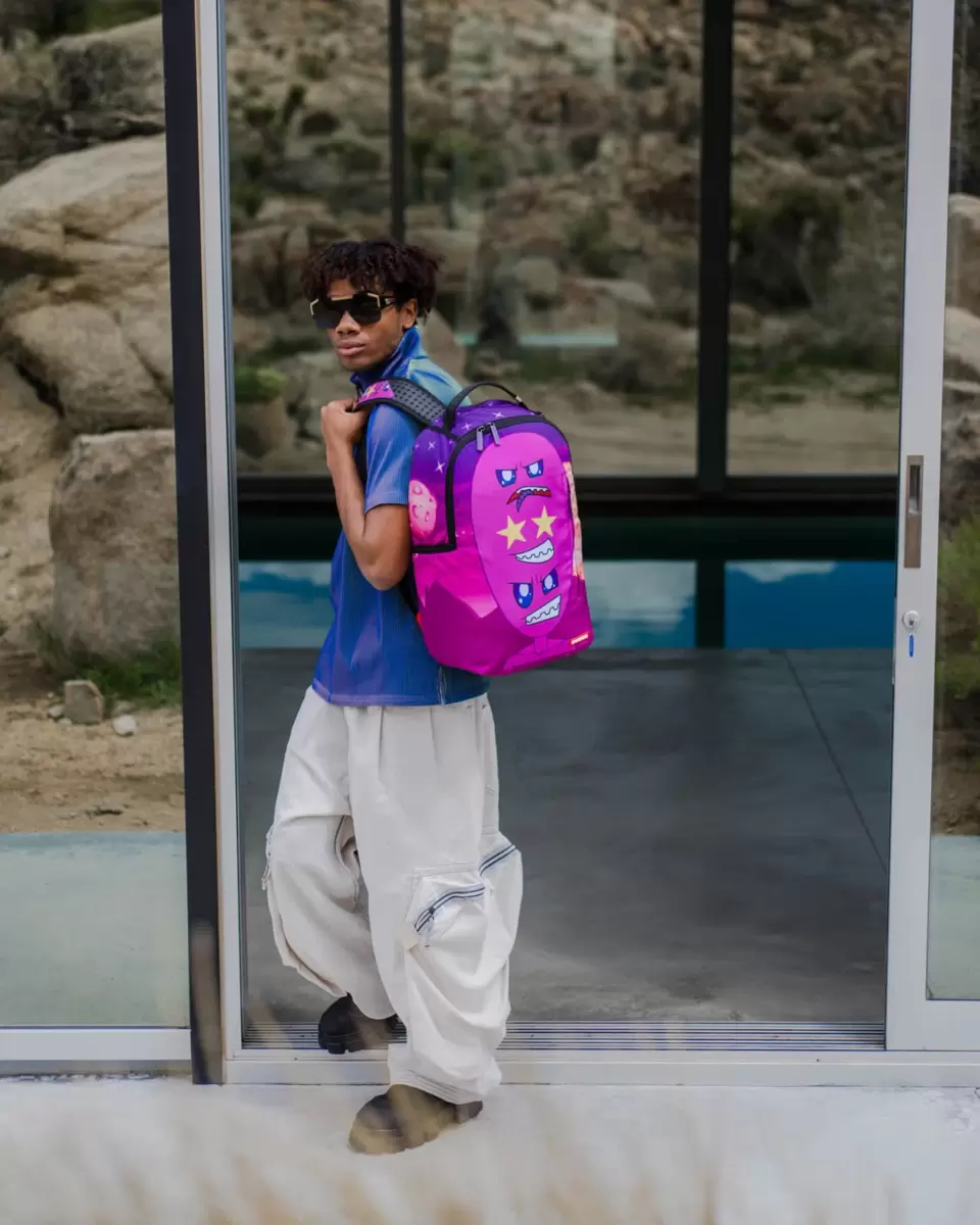 Dimensions: 18″ x 6″ x 11.5″ Front zipper pocket Side pockets Zippered Stash pocket Separate velour sunglass compartment Ergonomic mesh back padding Adjustable Straps for custom sizing Gold zippers with metal hardware Metal “Sprayground Authentic” badge Slide through back sleeve connects to carry-on luggage to free your hands