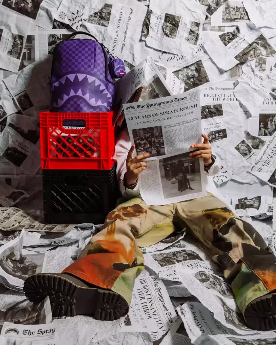 Dimensions: 18″ x 6″ x 11.5″ Front zipper pocket Side pockets Zippered Stash pocket Separate velour sunglass compartment Ergonomic mesh back padding Adjustable Straps for custom sizing Gold zippers with metal hardware Metal “Sprayground Authentic” badge Slide through back sleeve connects to carry-on luggage to free your hands