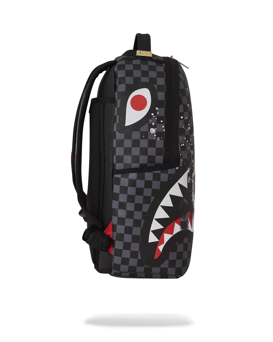 Dimensions: 18″ x 6″ x 11.5″ Front zipper pocket Side pockets Zippered Stash pocket Separate velour sunglass compartment Ergonomic mesh back padding Adjustable Straps for custom sizing Gold zippers with metal hardware Metal “Sprayground Authentic” badge Slide through back sleeve connects to carry-on luggage to free your hands
