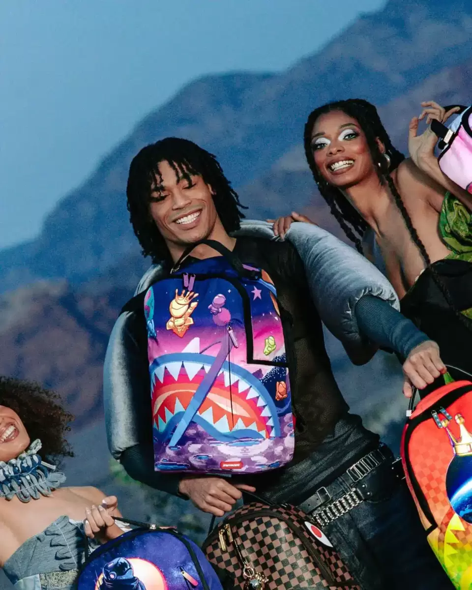 Dimensions: 18″ x 6″ x 11.5″ Front zipper pocket Side pockets Zippered Stash pocket Separate velour sunglass compartment Ergonomic mesh back padding Adjustable Straps for custom sizing Gold zippers with metal hardware Metal “Sprayground Authentic” badge Slide through back sleeve connects to carry-on luggage to free your hands