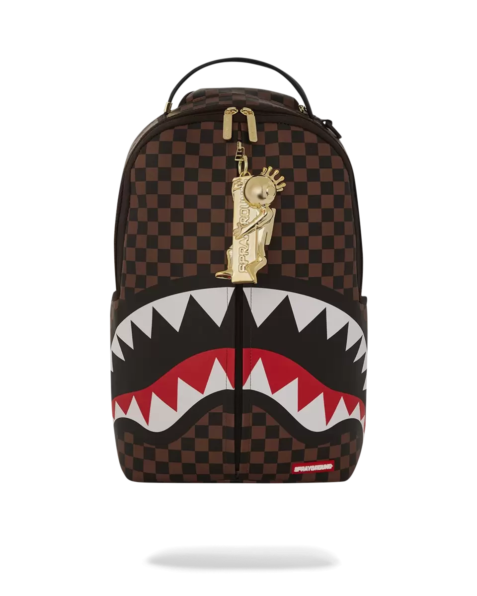Dimensions: 18″ x 6″ x 11.5″ Front zipper pocket Side pockets Zippered Stash pocket Separate velour sunglass compartment Ergonomic mesh back padding Adjustable Straps for custom sizing Gold zippers with metal hardware Metal “Sprayground Authentic” badge Slide through back sleeve connects to carry-on luggage to free your hands
