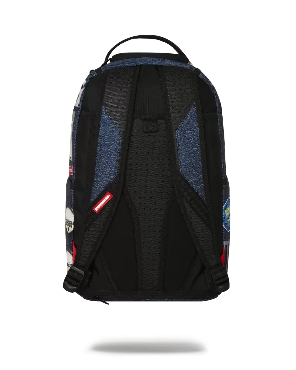 Dimensions: 18″ x 6″ x 11.5″ Front zipper pocket Side pockets Zippered Stash pocket Separate velour sunglass compartment Ergonomic mesh back padding Adjustable Straps for custom sizing Gold zippers with metal hardware Metal “Sprayground Authentic” badge Slide through back sleeve connects to carry-on luggage to free your hands