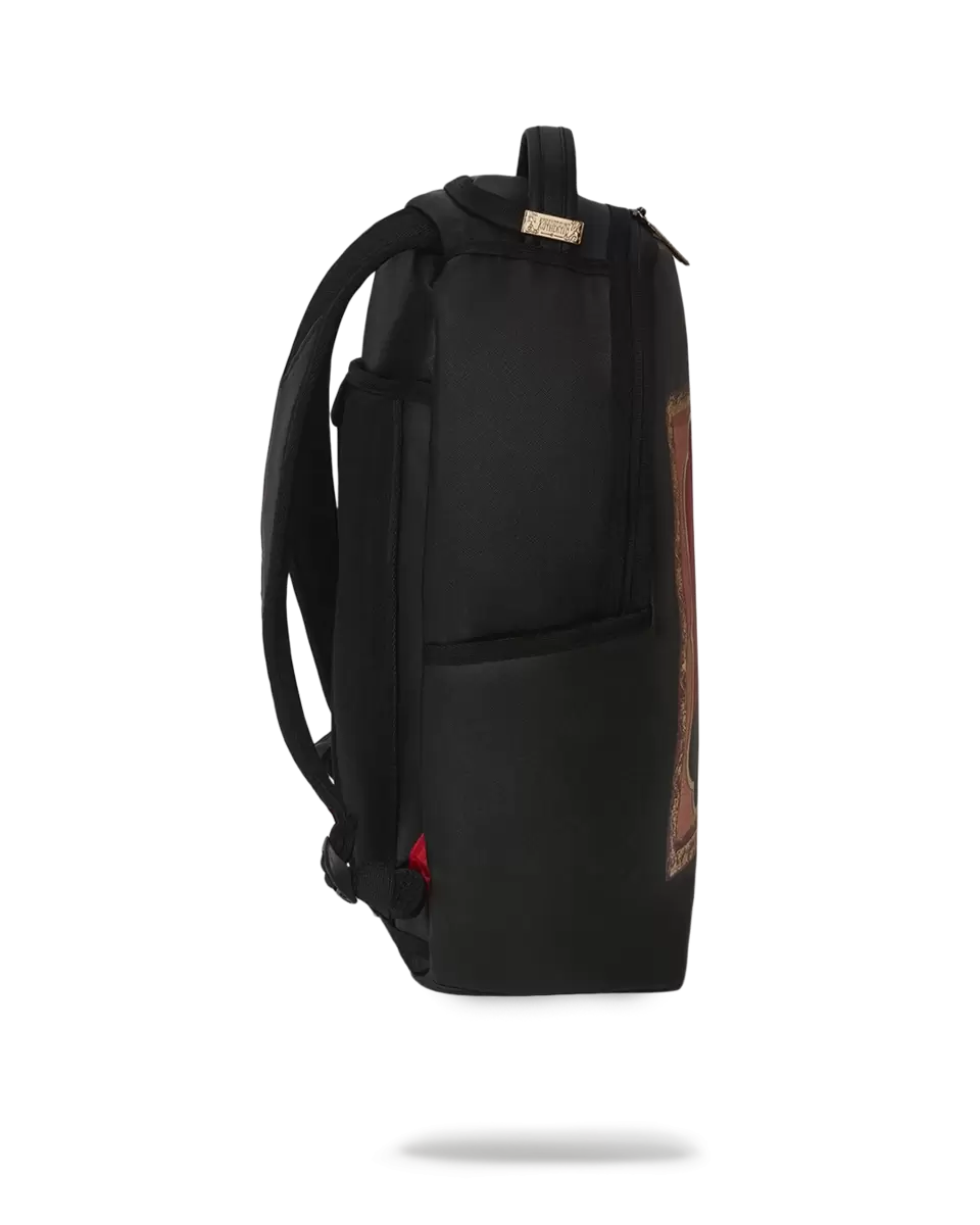 Dimensions: 18″ x 6″ x 11.5″ Front zipper pocket Side pockets Zippered Stash pocket Separate velour sunglass compartment Ergonomic mesh back padding Adjustable Straps for custom sizing Gold zippers with metal hardware Metal “Sprayground Authentic” badge Slide through back sleeve connects to carry-on luggage to free your hands