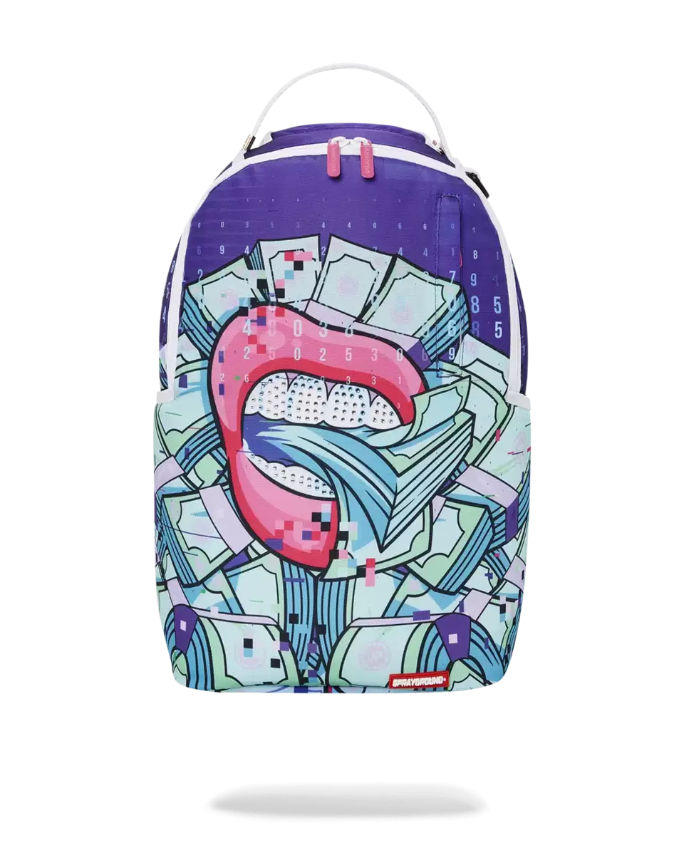 Dimensions: 18″ x 6″ x 11.5″ Front zipper pocket Side pockets Zippered Stash pocket Separate velour sunglass compartment Ergonomic mesh back padding Adjustable Straps for custom sizing Gold zippers with metal hardware Metal “Sprayground Authentic” badge Slide through back sleeve connects to carry-on luggage to free your hands