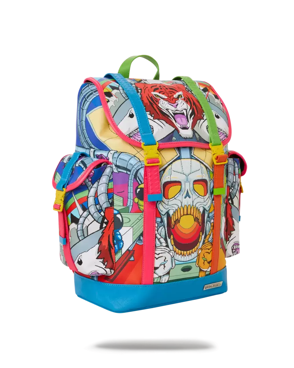 Dimensions: 18″ x 6″ x 11.5″ Top Flap opening w/ adjustable metal enamel buckles and drawstring closure Two side cargo pockets with metal enamel buckles and drawstring closures Zippered Stash pocket Ergonomic mesh back padding Adjustable Straps for custom sizing Embossed logo on back strap