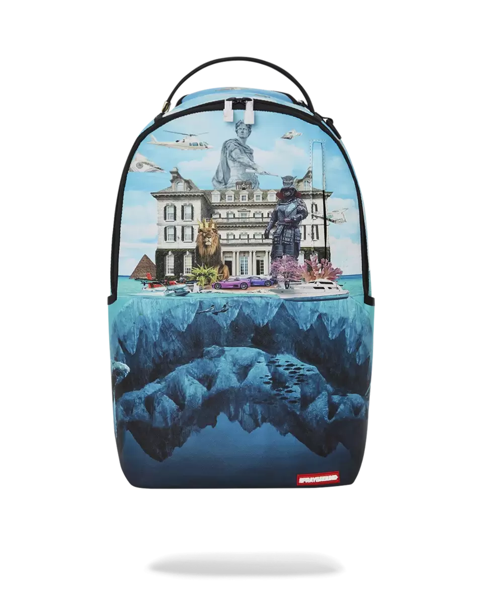 Dimensions: 18″ x 6″ x 11.5″ Front zipper pocket Side pockets Zippered Stash pocket Separate velour sunglass compartment Ergonomic mesh back padding Adjustable Straps for custom sizing Gold zippers with metal hardware Metal “Sprayground Authentic” badge Slide through back sleeve connects to carry-on luggage to free your hands