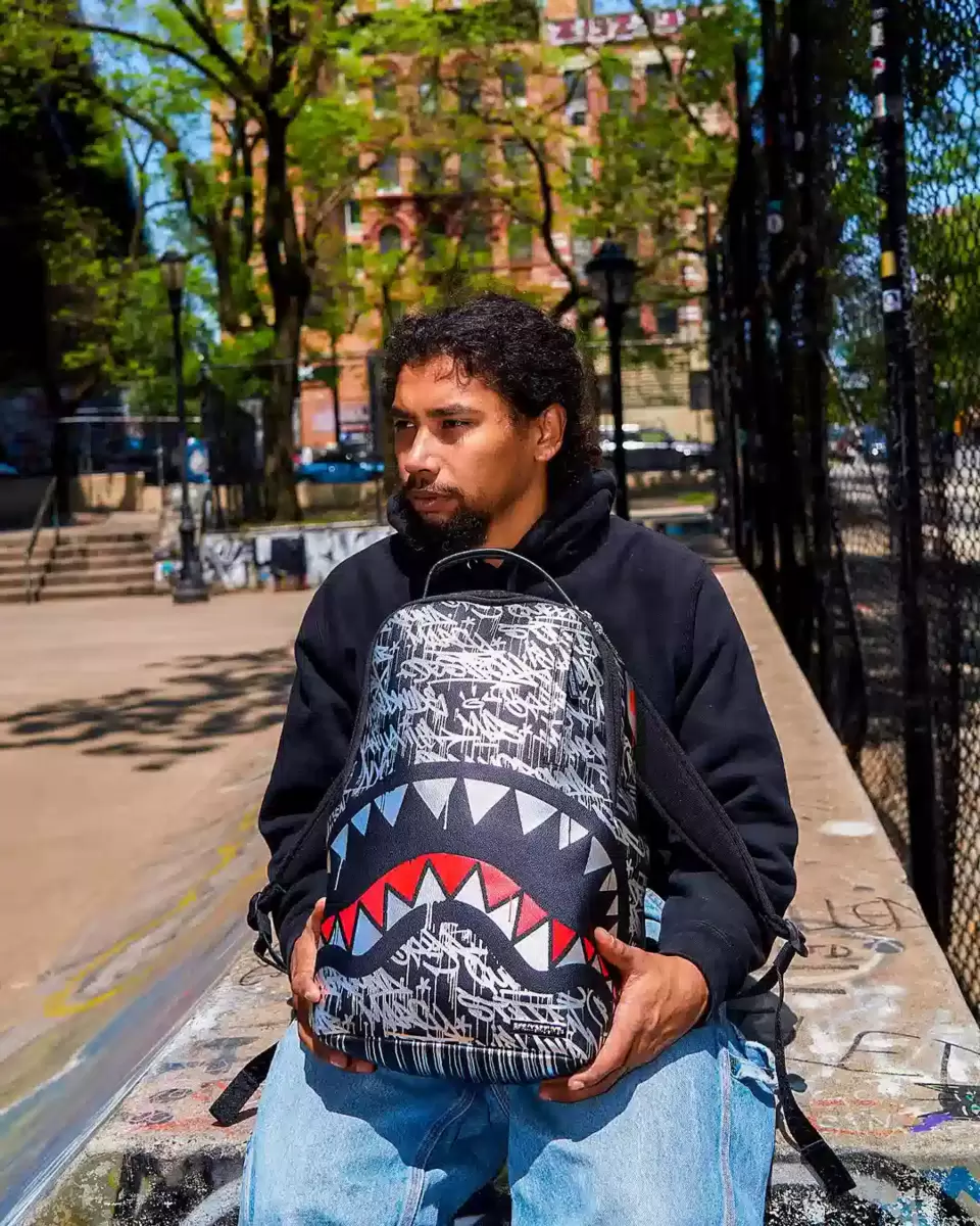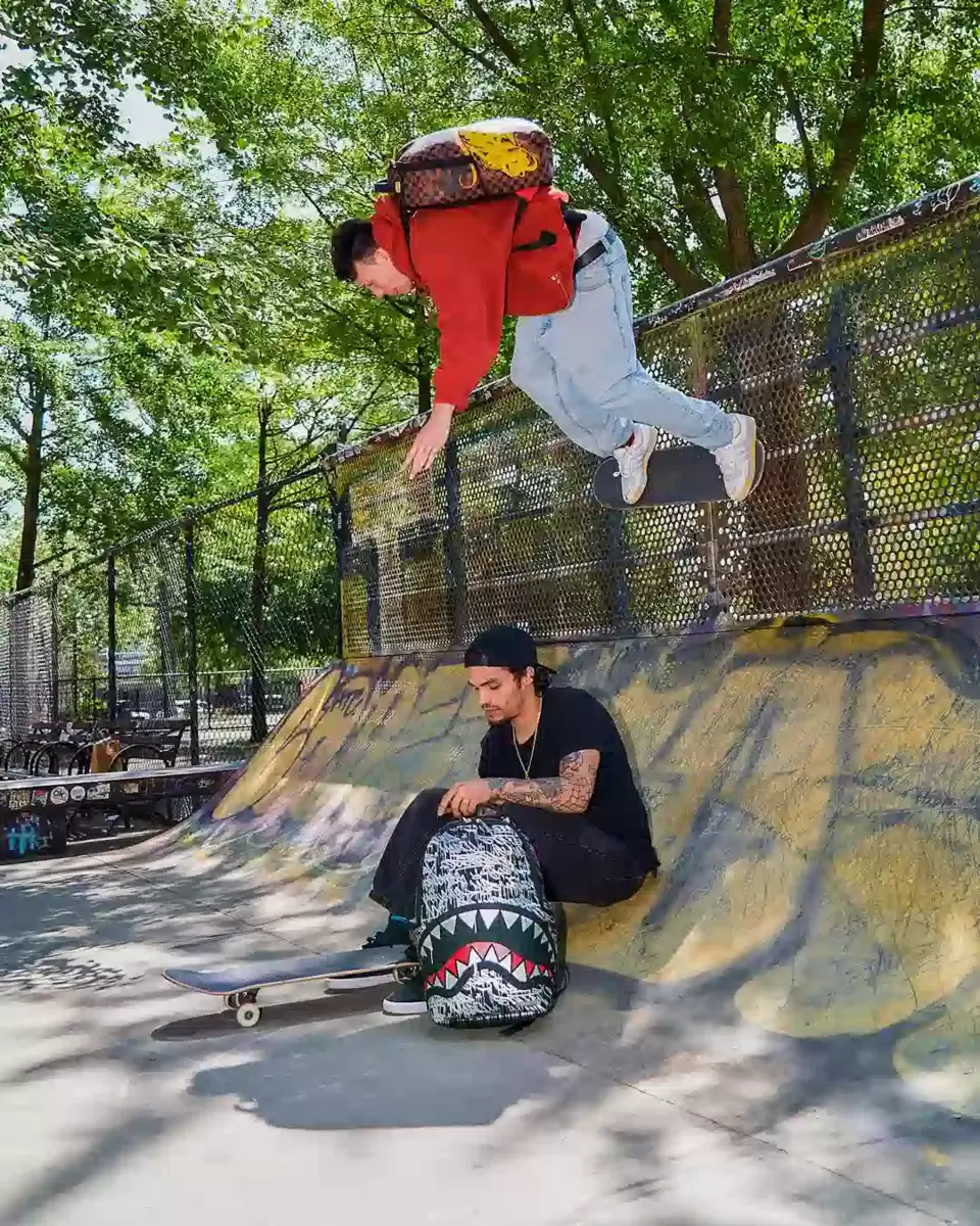 Dimensions: 18″ x 6″ x 11.5″ Front zipper pocket Side pockets Zippered Stash pocket Separate velour sunglass compartment Ergonomic mesh back padding Adjustable Straps for custom sizing Gold zippers with metal hardware Metal “Sprayground Authentic” badge Slide through back sleeve connects to carry-on luggage to free your hands