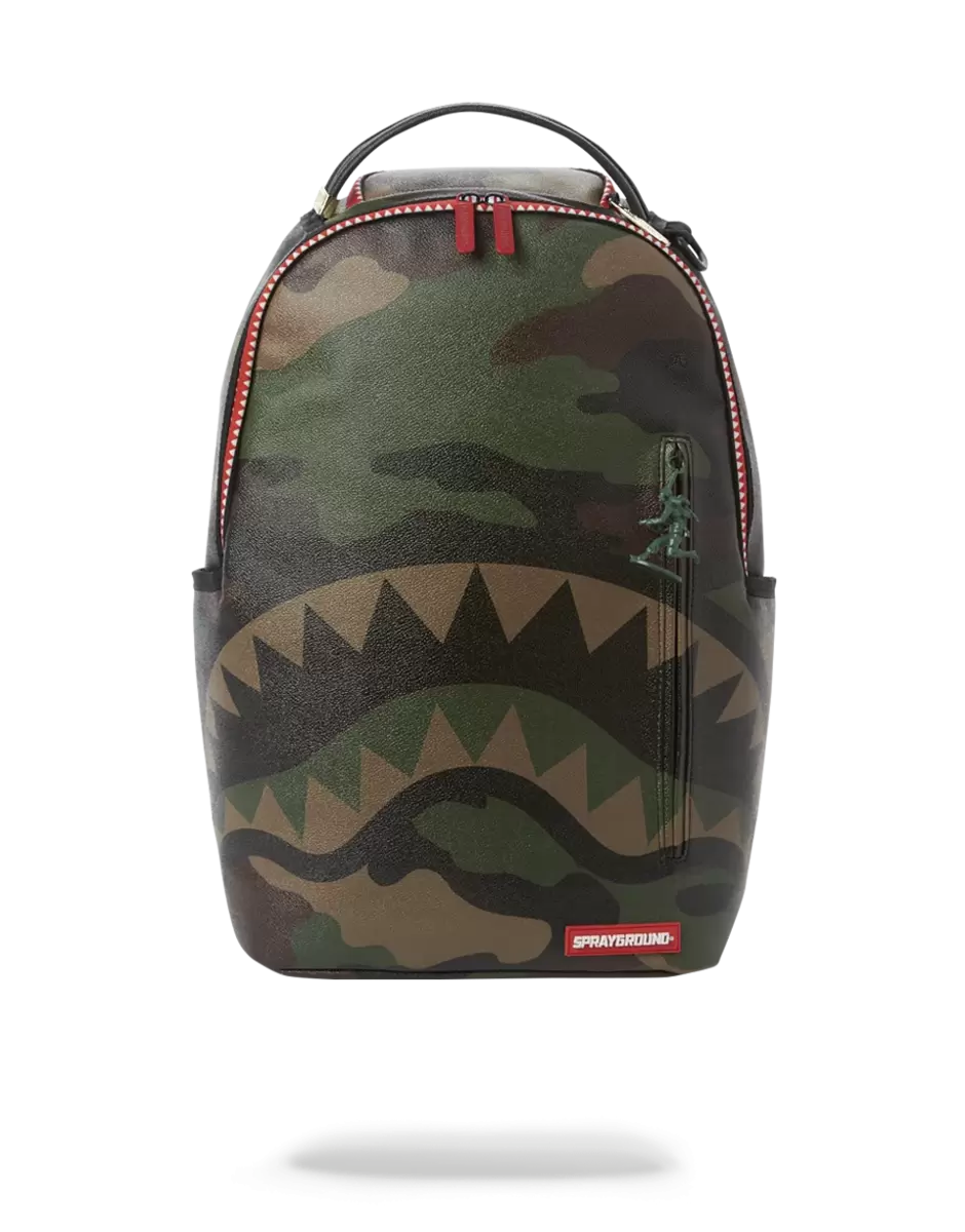 Dimensions: 18″ x 6″ x 11.5″ Front zipper pocket Side pockets Zippered Stash pocket Separate velour sunglass compartment Ergonomic mesh back padding Adjustable Straps for custom sizing Red, gold and army man zippers with metal hardware Metal “Sprayground Authentic” badge Slide through back sleeve connects to carry-on luggage to free your hands