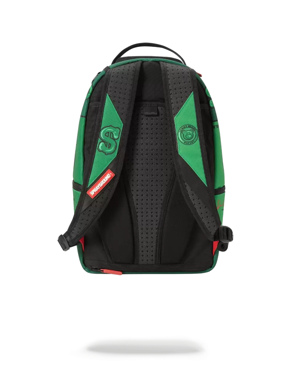 Dimensions: 18″ x 6″ x 11.5″ ∙ Front zipper pocket ∙ Side pockets ∙ Zippered Stash pocket ∙ Ergonomic mesh back padding ∙ Adjustable Straps for custom sizing ∙ Nylon Zippers with Metal Hardware ∙ Metal “Sprayground Authentic” badge ∙ Slide through back sleeve connects to Carry on luggage to free your hands