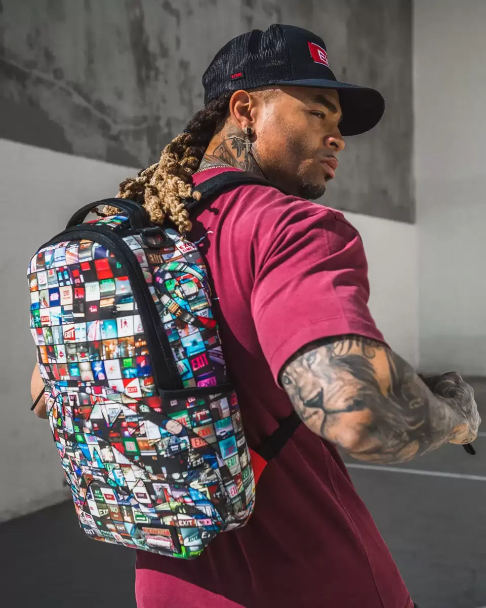 Dimensions: 18″ x 6″ x 11.5″ Front zipper pocket Side pockets Zippered Stash pocket Separate velour sunglass compartment Ergonomic mesh back padding Adjustable Straps for custom sizing Gold zippers with metal hardware Metal “Sprayground Authentic” badge Slide through back sleeve connects to carry-on luggage to free your hands