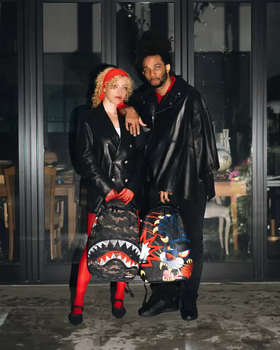 Dimensions: 18″ x 6″ x 11.5″ Front zipper pocket Side pockets Zippered Stash pocket Separate velour sunglass compartment Ergonomic mesh back padding Adjustable Straps for custom sizing Gold zippers with metal hardware Metal “Sprayground Authentic” badge Slide through back sleeve connects to carry-on luggage to free your hands