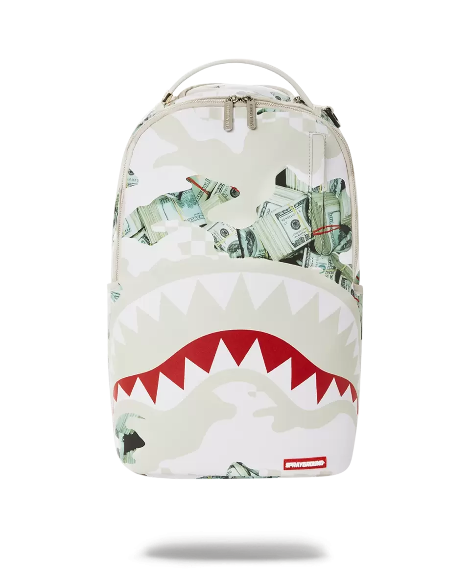 Dimensions: 18″ x 6″ x 11.5″ Front zipper pocket Side pockets Zippered Stash pocket Separate velour sunglass compartment Ergonomic mesh back padding Adjustable Straps for custom sizing Gold zippers with metal hardware Metal “Sprayground Authentic” badge Slide through back sleeve connects to carry-on luggage to free your hands