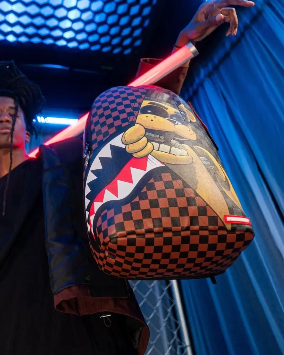 Dimensions: 18″ x 6″ x 11.5″ Front zipper pocket Side pockets Zippered Stash pocket Separate velour sunglass compartment Ergonomic mesh back padding Adjustable Straps for custom sizing Gold zippers with metal hardware Metal “Sprayground Authentic” badge Slide through back sleeve connects to carry-on luggage to free your hands