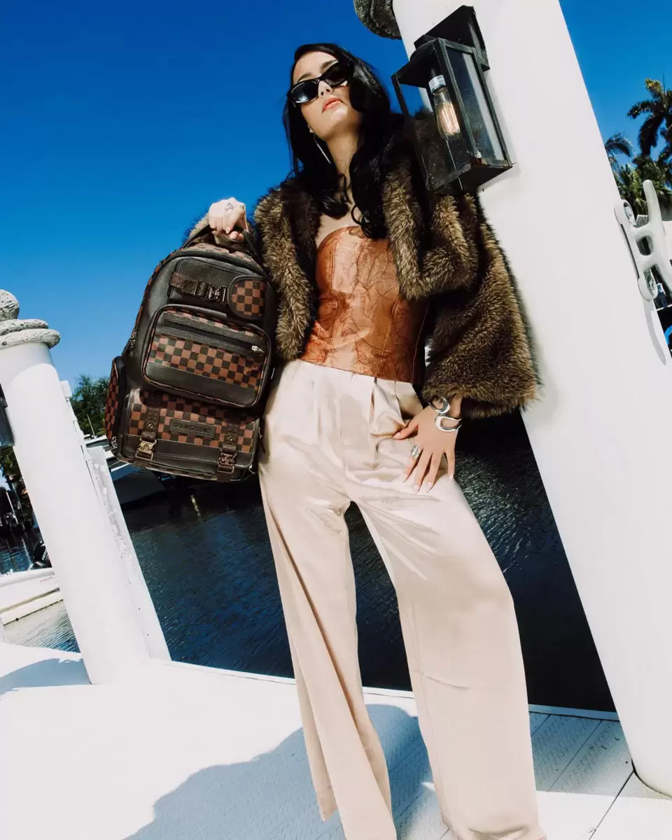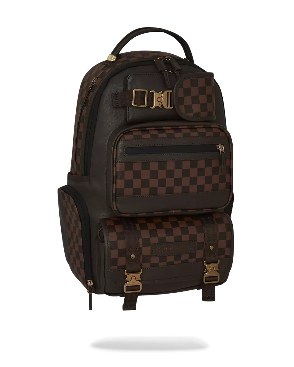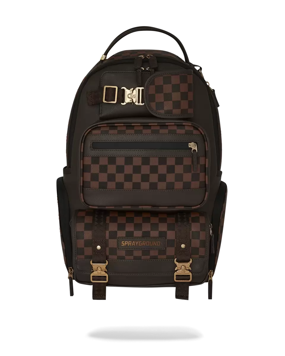 Dimensions: 18″ x 6″ x 11.5″ Front zipper pocket Side pockets Zippered Stash pocket Separate velour sunglass compartment Ergonomic mesh back padding Adjustable Straps for custom sizing Gold zippers with metal hardware Metal “Sprayground Authentic” badge Slide through back sleeve connects to carry-on luggage to free your hands