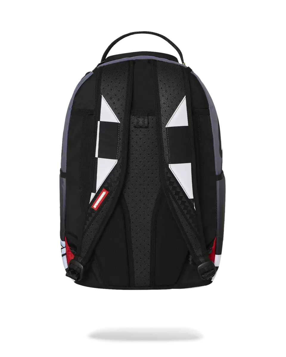 Dimensions: 18″ x 6″ x 11.5″ Front zipper pocket Side pockets Zippered Stash pocket Separate velour sunglass compartment Ergonomic mesh back padding Adjustable Straps for custom sizing Gold zippers with metal hardware Metal “Sprayground Authentic” badge Slide through back sleeve connects to carry-on luggage to free your hands