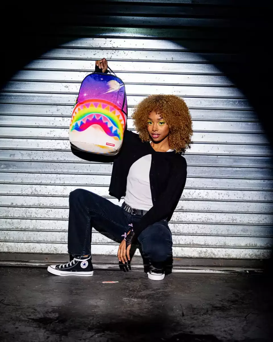 Dimensions: 18″ x 6″ x 11.5″ Front zipper pocket Side pockets Zippered Stash pocket Separate velour sunglass compartment Ergonomic mesh back padding Adjustable Straps for custom sizing Gold zippers with metal hardware Metal “Sprayground Authentic” badge Slide through back sleeve connects to carry-on luggage to free your hands
