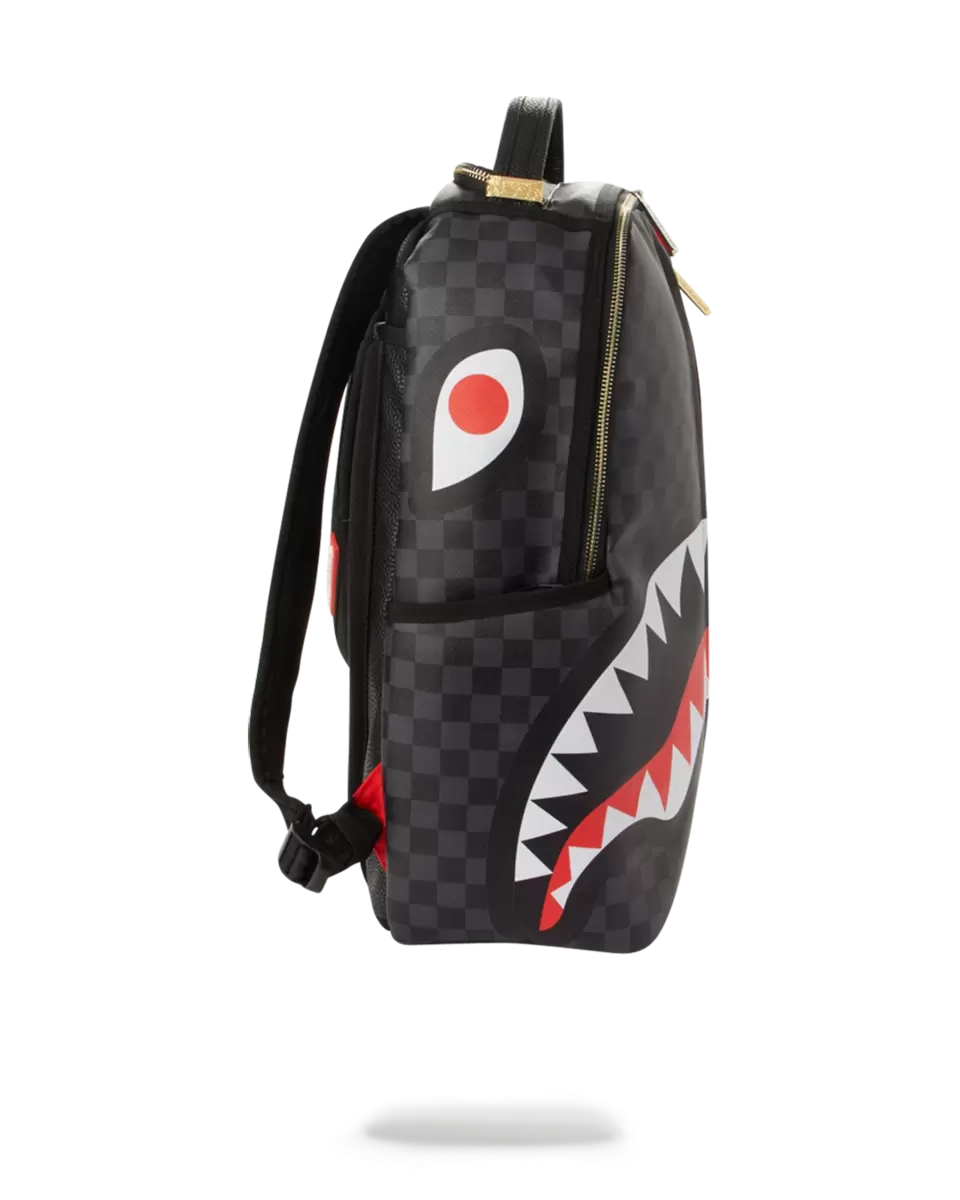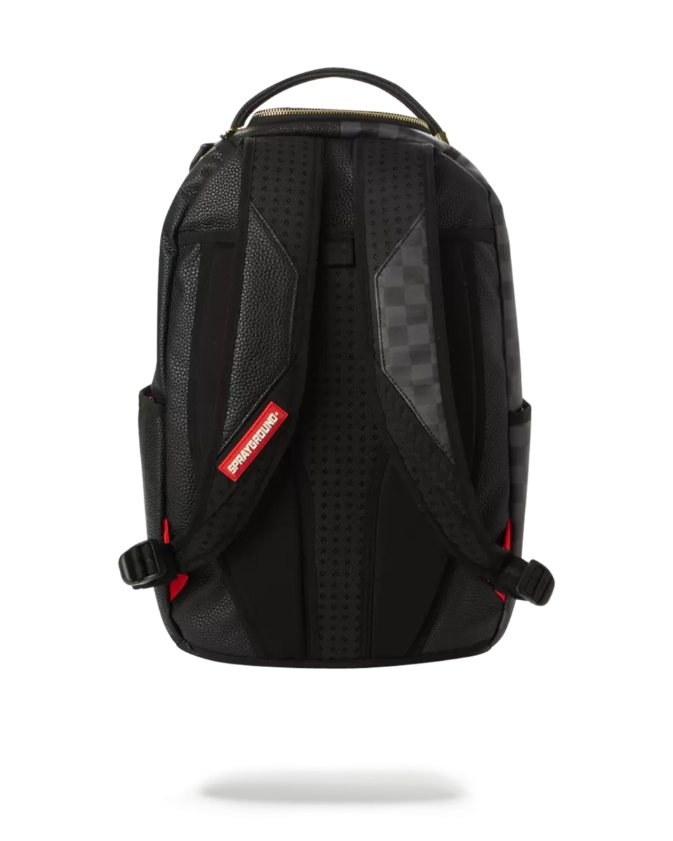 Dimensions: 18″ x 6″ x 11.5″ Front zipper pocket Side pockets Zippered Stash pocket Separate velour sunglass compartment Ergonomic mesh back padding Adjustable Straps for custom sizing Gold and silver zippers with metal hardware Metal “Sprayground Authentic” badge Slide through back sleeve connects to carry-on luggage to free your hands