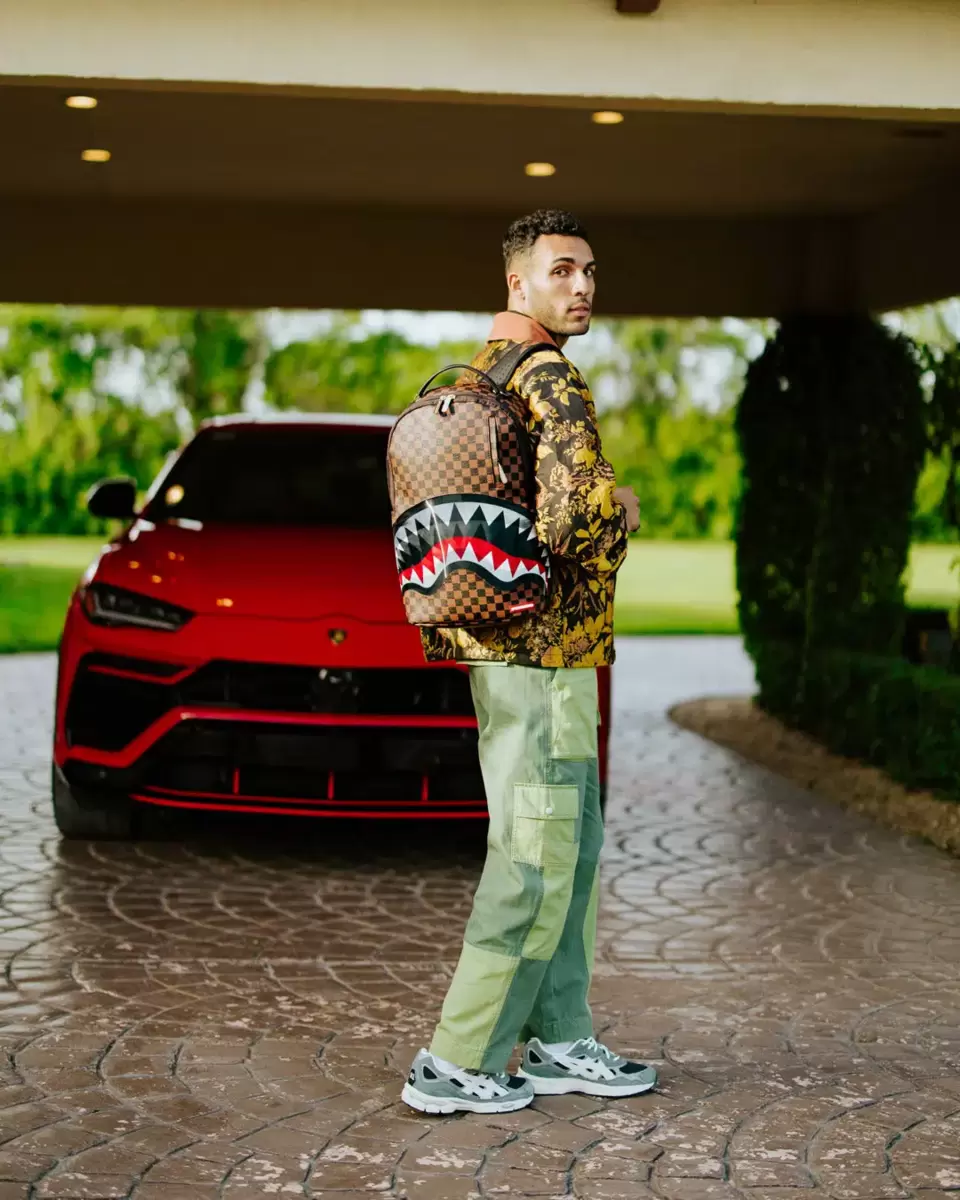 Dimensions: 18″ x 6″ x 11.5″ Front zipper pocket Side pockets Zippered Stash pocket Separate velour sunglass compartment Ergonomic mesh back padding Adjustable Straps for custom sizing Gold zippers with metal hardware Metal “Sprayground Authentic” badge Slide through back sleeve connects to carry-on luggage to free your hands