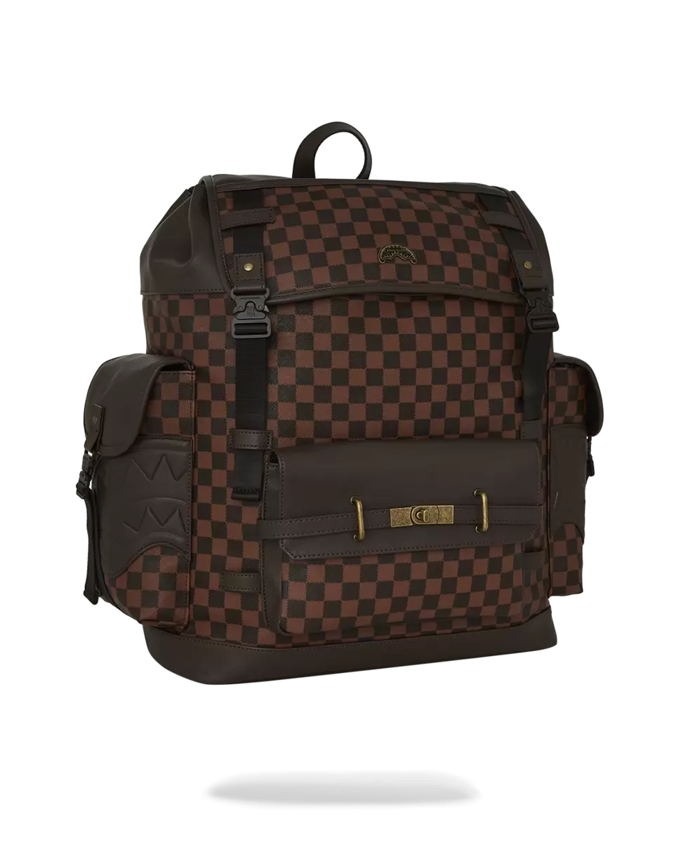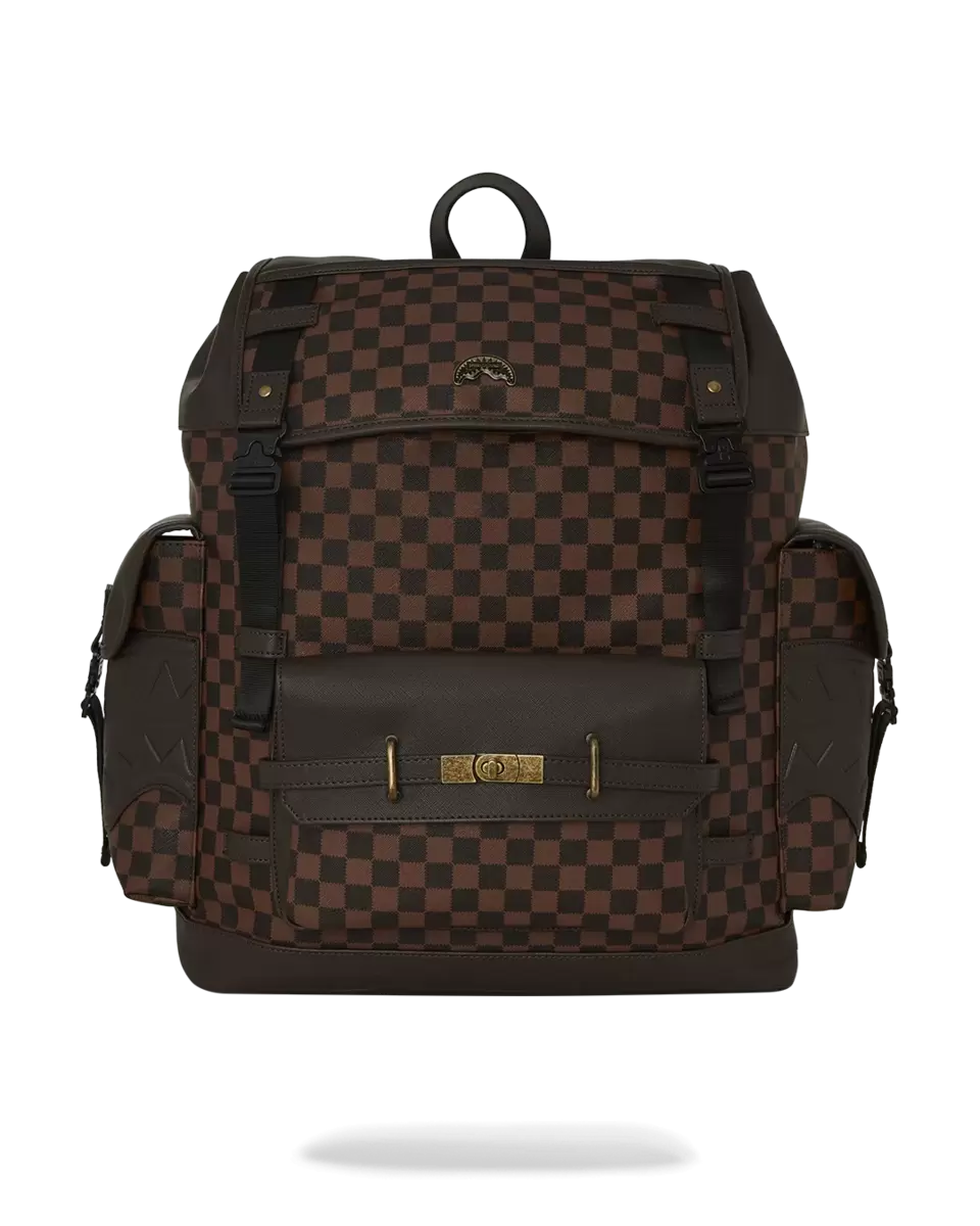 Dimensions: 18″ x 6″ x 11.5″ Front zipper pocket Side pockets Zippered Stash pocket Separate velour sunglass compartment Ergonomic mesh back padding Adjustable Straps for custom sizing Gold zippers with metal hardware Metal “Sprayground Authentic” badge Slide through back sleeve connects to carry-on luggage to free your hands