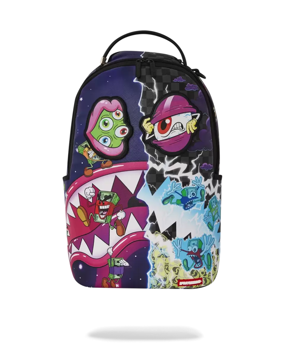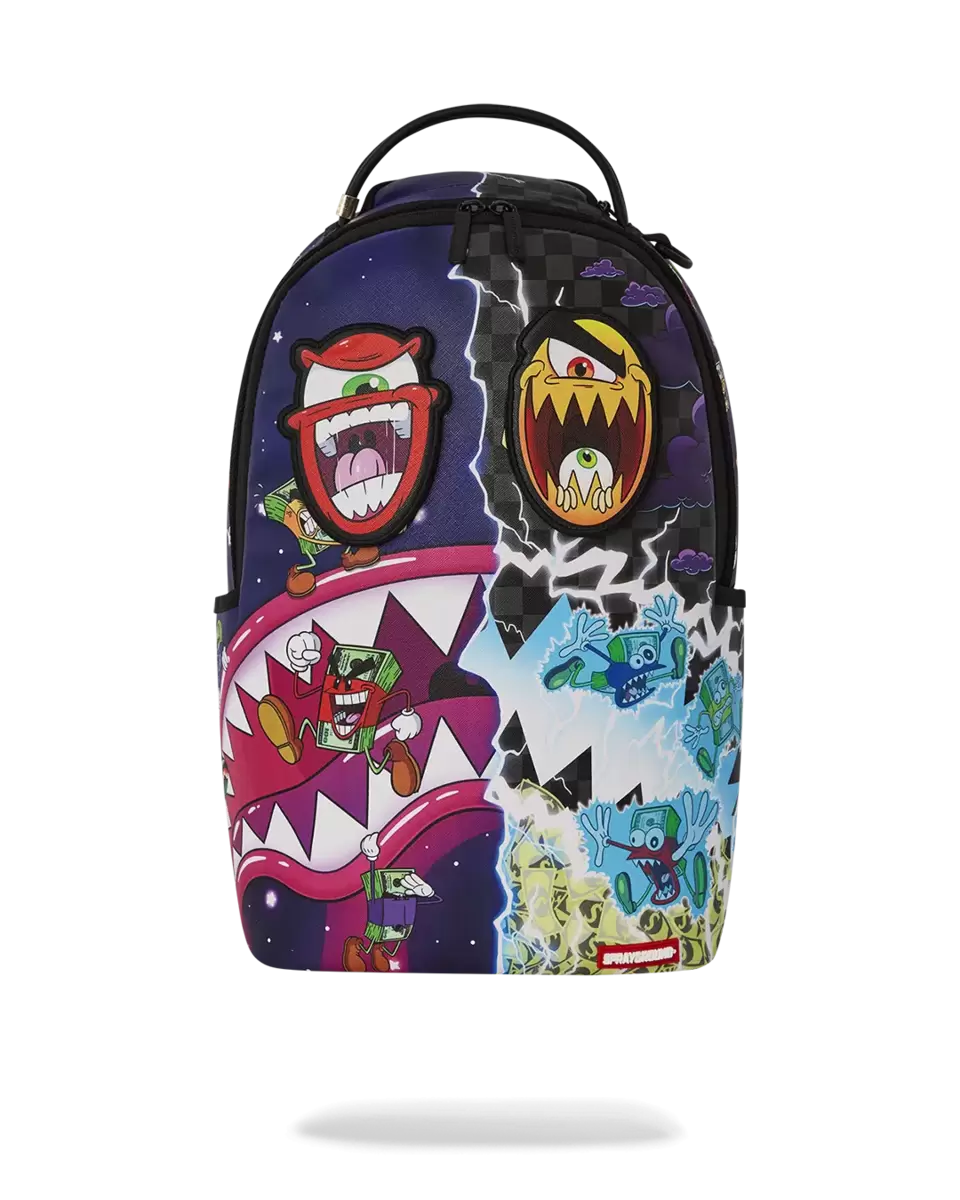 Dimensions: 18″ x 6″ x 11.5″ Front zipper pocket Side pockets Zippered Stash pocket Separate velour sunglass compartment Ergonomic mesh back padding Adjustable Straps for custom sizing Gold zippers with metal hardware Metal “Sprayground Authentic” badge Slide through back sleeve connects to carry-on luggage to free your hands