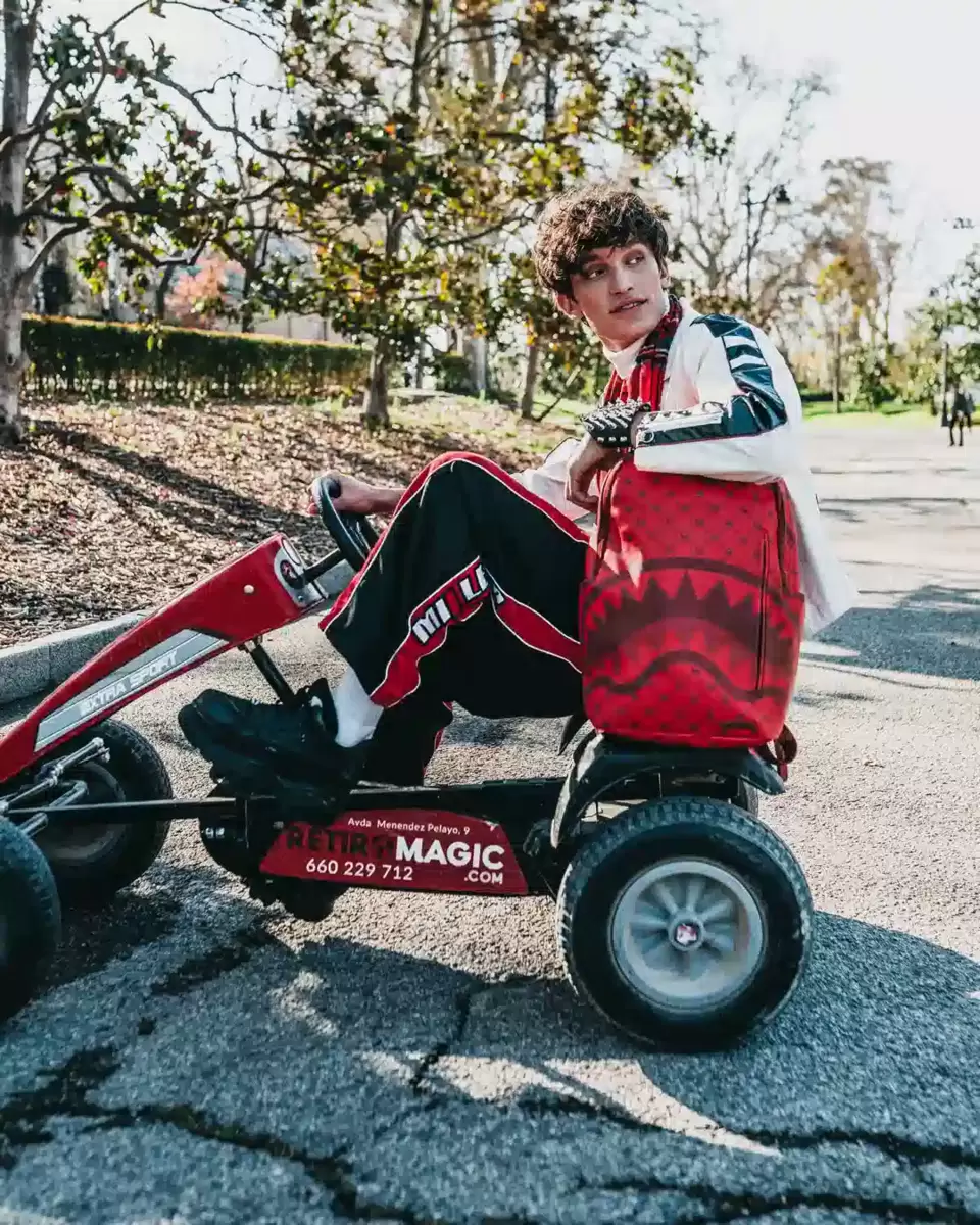 Dimensions: 18″ x 6″ x 11.5″ Front zipper pocket Side pockets Zippered Stash pocket Separate velour sunglass compartment Ergonomic mesh back padding Adjustable Straps for custom sizing Red zippers with metal hardware Metal “Sprayground Authentic” badge Slide through back sleeve connects to carry-on luggage to free your hands