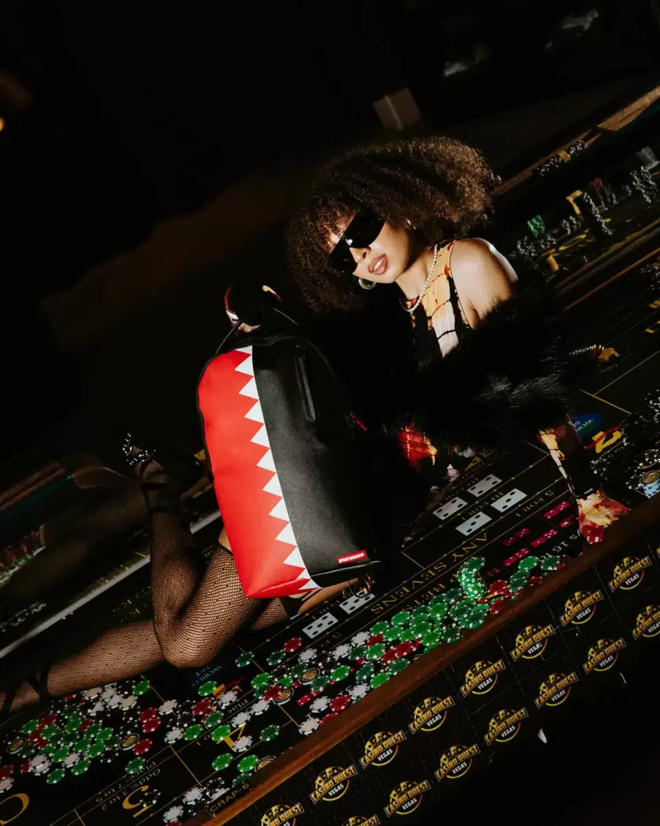 Dimensions: 18″ x 6″ x 11.5″ Front zipper pocket Side pockets Zippered Stash pocket Separate velour sunglass compartment Ergonomic mesh back padding Adjustable Straps for custom sizing Gold zippers with metal hardware Metal “Sprayground Authentic” badge Slide through back sleeve connects to carry-on luggage to free your hands