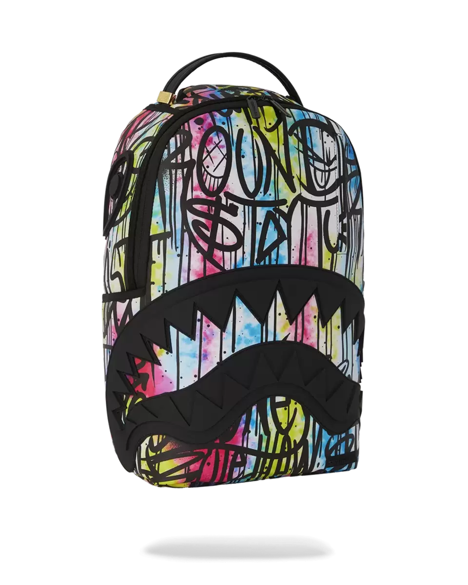 Dimensions: 18″ x 6″ x 11.5″ Front zipper pocket Side pockets Zippered Stash pocket Separate velour sunglass compartment Ergonomic mesh back padding Adjustable Straps for custom sizing Gold zippers with metal hardware Metal “Sprayground Authentic” badge Slide through back sleeve connects to carry-on luggage to free your hands