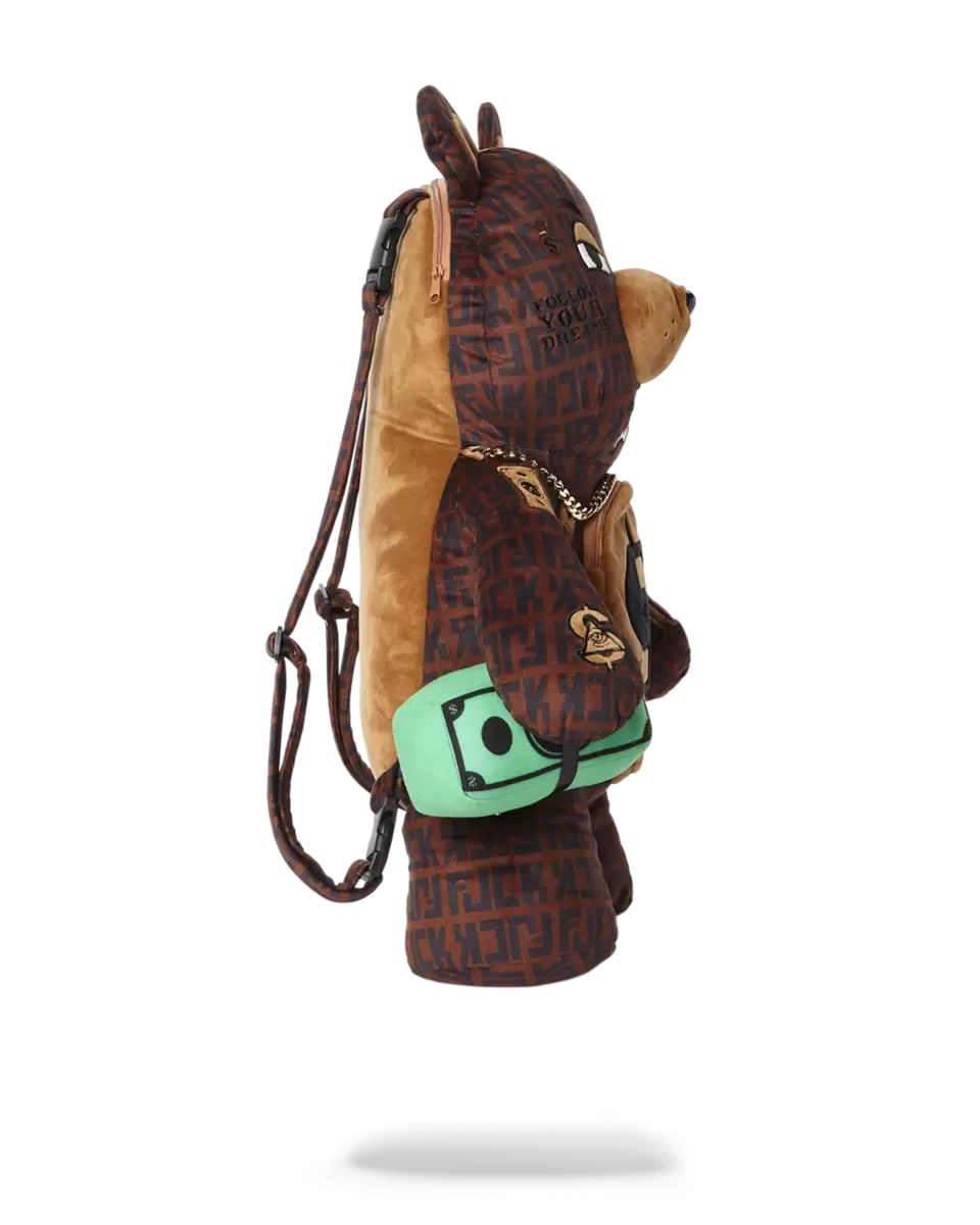 Money Bear returns in this limited edition teddy bear backpack! Exterior 1 Gold Necklaces. Money Stack. Dimensions 25, x 7, x 12, Zippered pocket on belly, Z