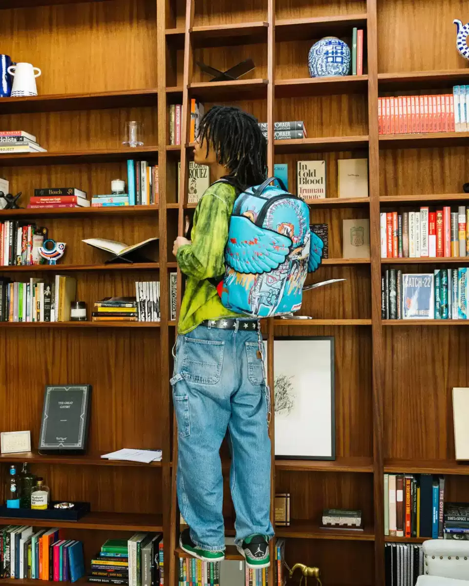 Dimensions: 18″ x 6″ x 11.5″ Front zipper pocket Side pockets Zippered Stash pocket Separate velour sunglass compartment Ergonomic mesh back padding Adjustable Straps for custom sizing Gold zippers with metal hardware Metal “Sprayground Authentic” badge Slide through back sleeve connects to carry-on luggage to free your hands