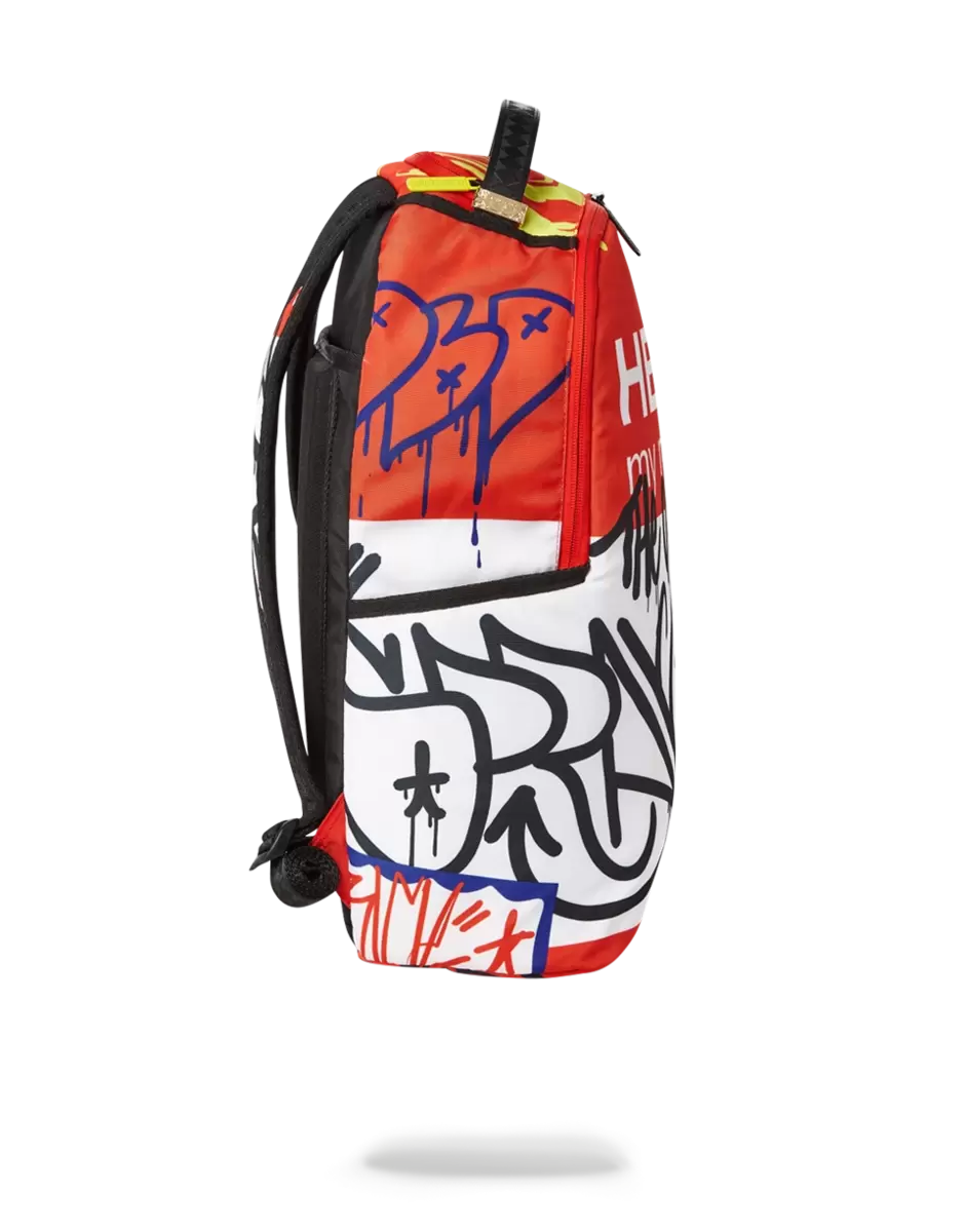 Dimensions: 18″ x 6″ x 11.5″ Front zipper pocket Side pockets Zippered Stash pocket Separate velour sunglass compartment Ergonomic mesh back padding Adjustable Straps for custom sizing Multicolor zippers with metal hardware Metal “Sprayground Authentic” badge Slide through back sleeve connects to carry-on luggage to free your hands