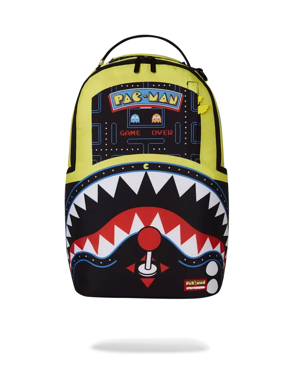 Dimensions: 18″ x 6″ x 11.5″ Front zipper pocket Side pockets Zippered Stash pocket Separate velour sunglass compartment Ergonomic mesh back padding Adjustable Straps for custom sizing Gold zippers with metal hardware Metal “Sprayground Authentic” badge Slide through back sleeve connects to carry-on luggage to free your hands
