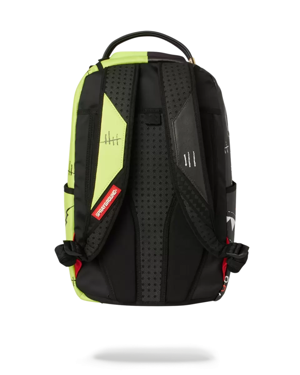 Dimensions: 18″ x 6″ x 11.5″ Front zipper pocket Side pockets Zippered Stash pocket Separate velour sunglass compartment Ergonomic mesh back padding Adjustable Straps for custom sizing Black lightning bolt zippers with metal hardware Metal “Sprayground Authentic” badge Slide through back sleeve connects to carry-on luggage to free your hands