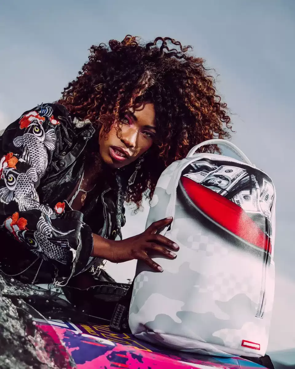 Dimensions: 18″ x 6″ x 11.5″ Front zipper pocket Side pockets Zippered Stash pocket Separate velour sunglass compartment Ergonomic mesh back padding Adjustable Straps for custom sizing Gold zippers with metal hardware Metal “Sprayground Authentic” badge Slide through back sleeve connects to carry-on luggage to free your hands