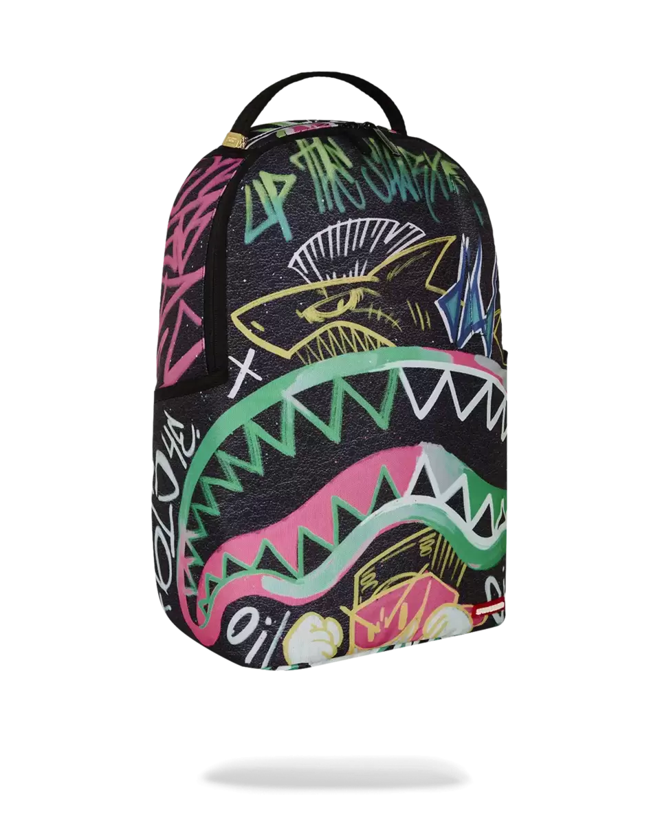 Dimensions: 18″ x 6″ x 11.5″ Front zipper pocket Side pockets Zippered Stash pocket Separate velour sunglass compartment Ergonomic mesh back padding Adjustable Straps for custom sizing Gold zippers with metal hardware Metal “Sprayground Authentic” badge Slide through back sleeve connects to carry-on luggage to free your hands