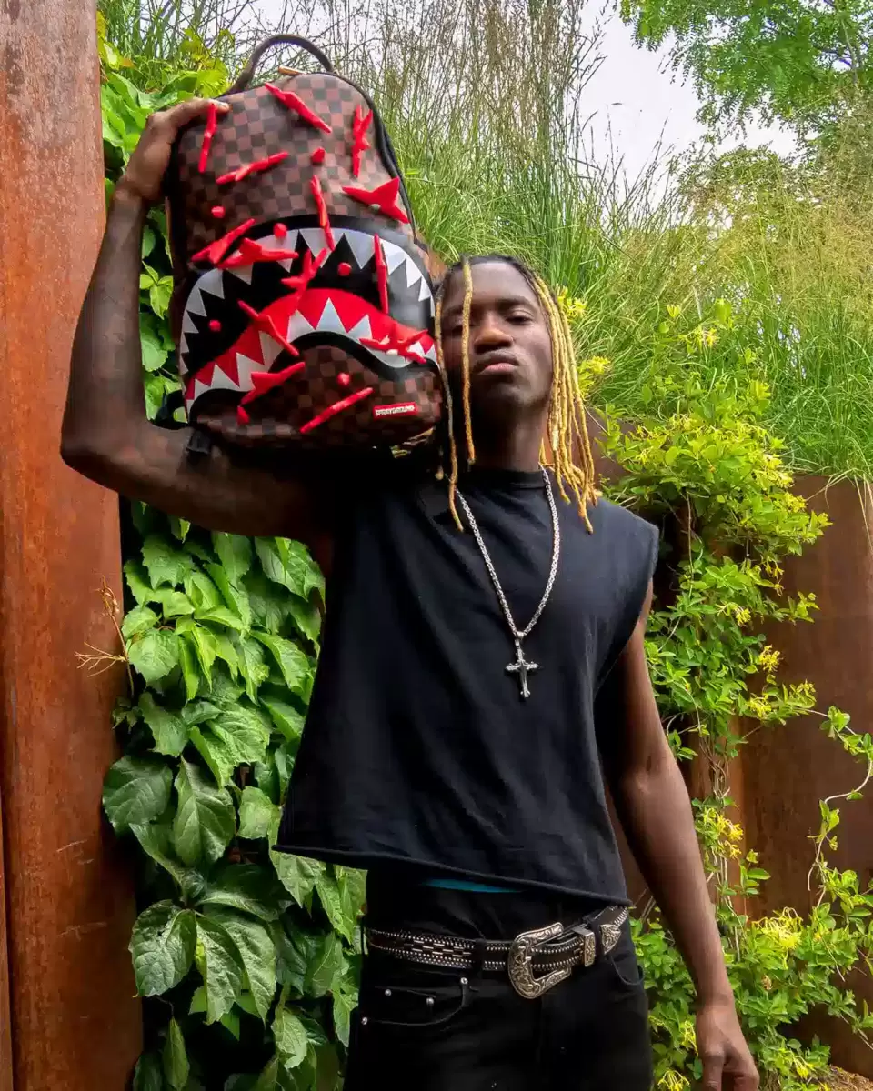 Dimensions: 18″ x 6″ x 11.5″ Front zipper pocket Side pockets Zippered Stash pocket Separate velour sunglass compartment Ergonomic mesh back padding Adjustable Straps for custom sizing Gold zippers with metal hardware Metal “Sprayground Authentic” badge Slide through back sleeve connects to carry-on luggage to free your hands