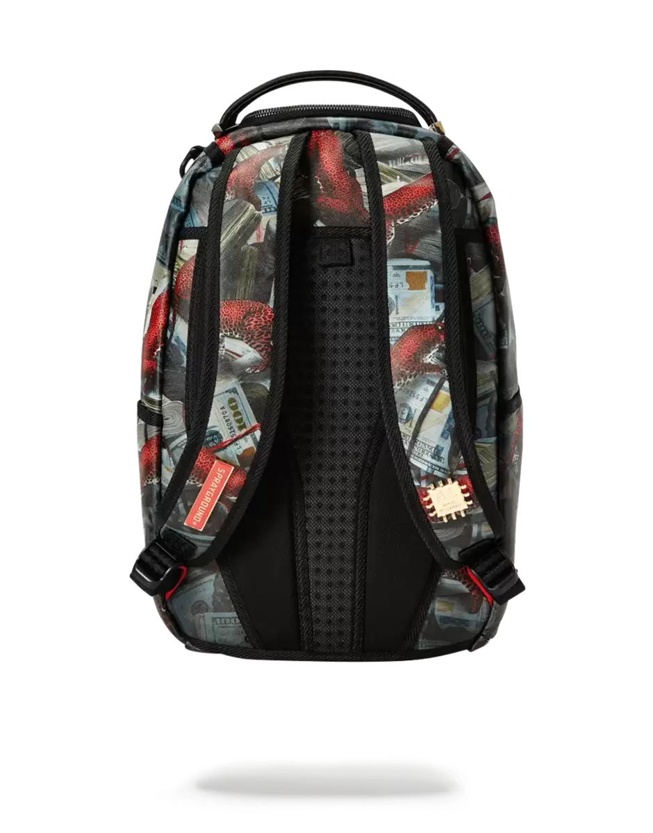 Dimensions: 18″ x 6″ x 11.5″ ∙ Front zipper pocket ∙ Side pockets ∙ Zippered Stash pocket ∙ Ergonomic mesh back padding ∙ Adjustable Straps for custom sizing ∙ Nylon Zippers with Metal Hardware ∙ Metal “Sprayground Authentic” badge ∙ Slide through back sleeve connects to Carry on luggage to free your hands