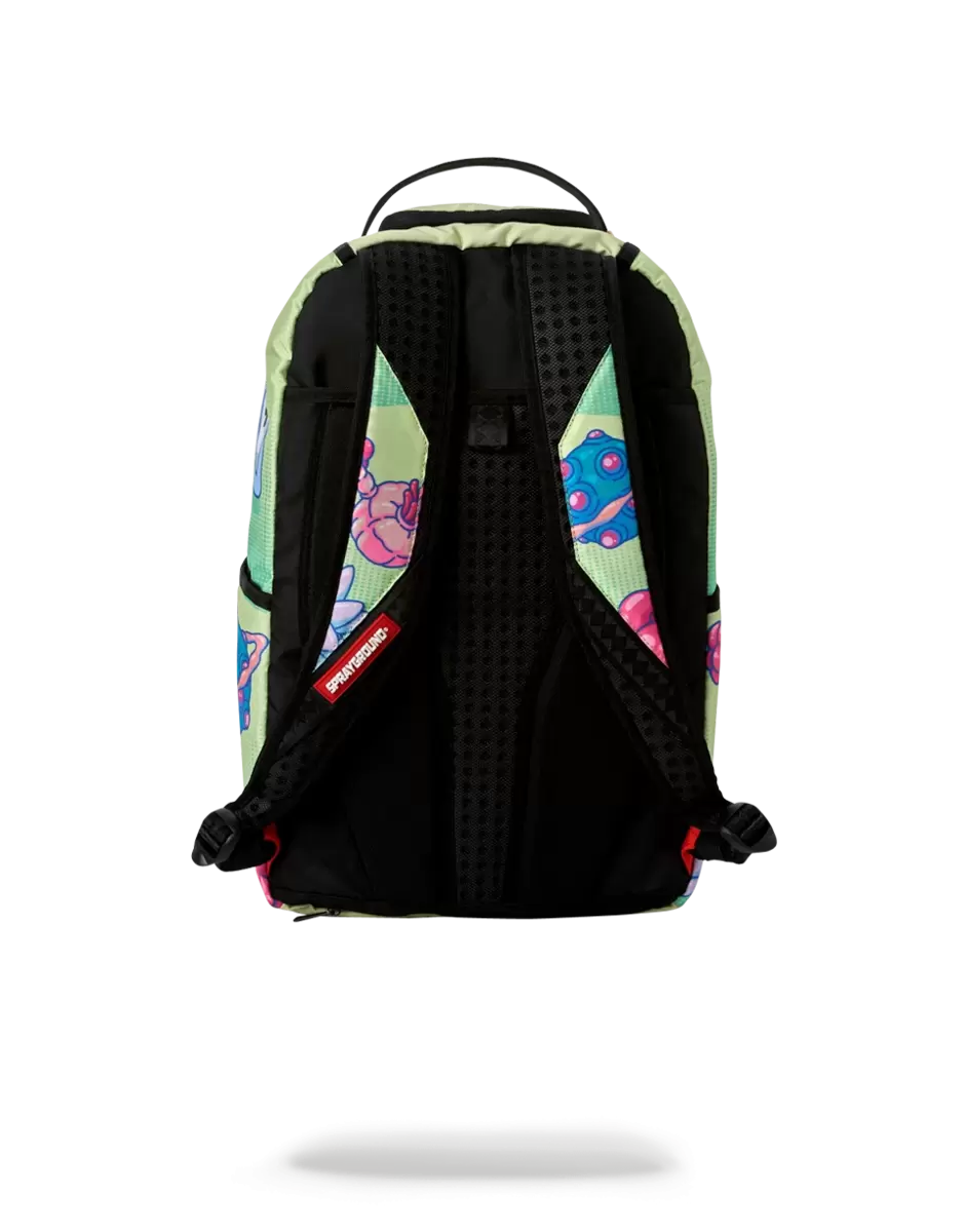 Dimensions: 18″ x 6″ x 11.5″ Front zipper pocket Side pockets Zippered Stash pocket Separate velour sunglass compartment Ergonomic mesh back padding Adjustable Straps for custom sizing Blue zippers with metal hardware Metal “Sprayground Authentic” badge Slide through back sleeve connects to carry-on luggage to free your hands