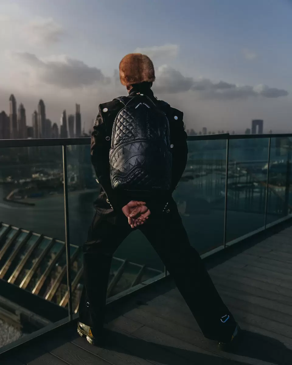 Dimensions: 18″ x 6″ x 11.5″ Front zipper pocket Side pockets Zippered Stash pocket Separate velour sunglass compartment Ergonomic mesh back padding Adjustable Straps for custom sizing Gold zippers with metal hardware Metal “Sprayground Authentic” badge Slide through back sleeve connects to carry-on luggage to free your hands
