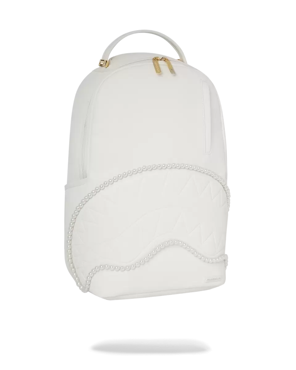 100% PVC embossed sharkmouth embellished with faux pearls featuring gold hardware