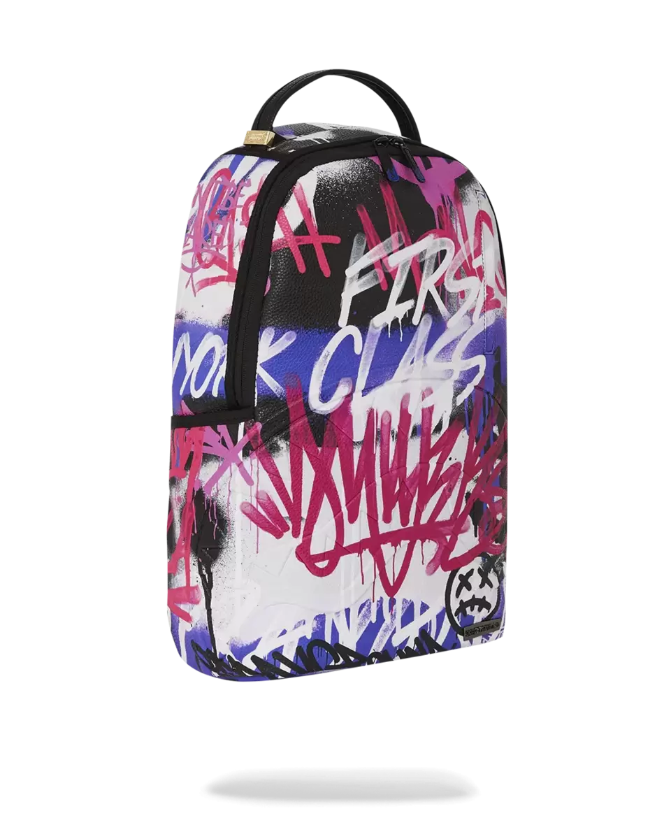 Dimensions: 18″ x 6″ x 11.5″ Front zipper pocket Side pockets Zippered Stash pocket Separate velour sunglass compartment Ergonomic mesh back padding Adjustable Straps for custom sizing Gold zippers with metal hardware Metal “Sprayground Authentic” badge Slide through back sleeve connects to carry-on luggage to free your hands