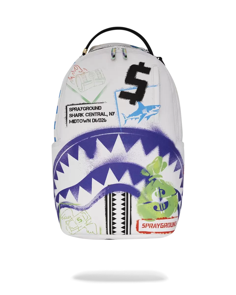 Dimensions: 18″ x 6″ x 11.5″ Front zipper pocket Side pockets Zippered Stash pocket Separate velour sunglass compartment Ergonomic mesh back padding Adjustable Straps for custom sizing Gold zippers with metal hardware Metal “Sprayground Authentic” badge Slide through back sleeve connects to carry-on luggage to free your hands