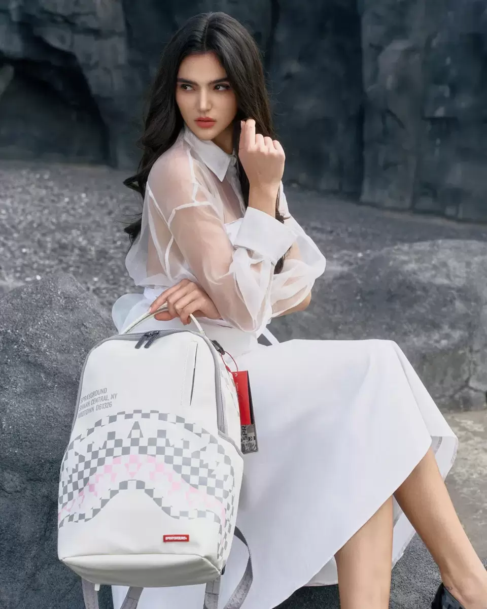 Dimensions: 18″ x 6″ x 11.5″ Front zipper pocket Side pockets Zippered Stash pocket Separate velour sunglass compartment Ergonomic mesh back padding Adjustable Straps for custom sizing Gold zippers with metal hardware Metal “Sprayground Authentic” badge Slide through back sleeve connects to carry-on luggage to free your hands